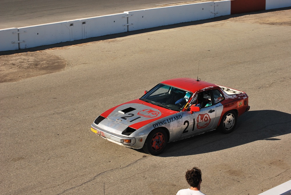 Last weekend at Sonoma, LeMons ran their annual “Arse-Freeze-Apalooza” event pitting cars and drivers against the cold weather as well as each other. The series splits cars into three different classes based on somewhat arbitrary judgement calls, Class A (The Good), Class B (The Bad), and Class C (The Ugly). There are only a couple Porsches running in the series, but one of them won the Class B category at the Northern California race last weekend, and that deserves a bit of celebration. The Dying Lizard (a play on famed racing team Flying Lizard, also aping their famous red and silver livery) Porsche 924 took the win, mostly by simply staying on the track and keeping their noses clean, as endurance racing should be. The team, a local group, has between them a bunch of laps at Sonoma, and they’re Porsche and Audi fanatics, making the 924 a perfect choice. Jim Nix, de-facto team captain, is a driving instructor at the track with a couple of local clubs. Nix ran the lions share of the race, clicking off quick and clean laps.