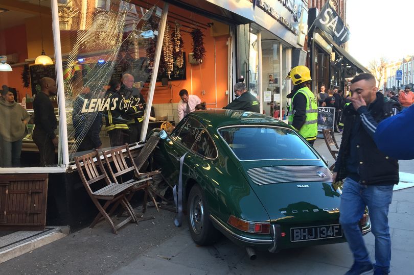 This weekend in Northwest London, a small urban coffee shop had its front windows demolished by the careless front end of an Irish Green 1968 Porsche 912. According to eyewitnesses in a report from The Mirror, the Porsche was being driven incredibly fast around a corner and “just lost control” when it smashed into the front of the streetside restaurant.