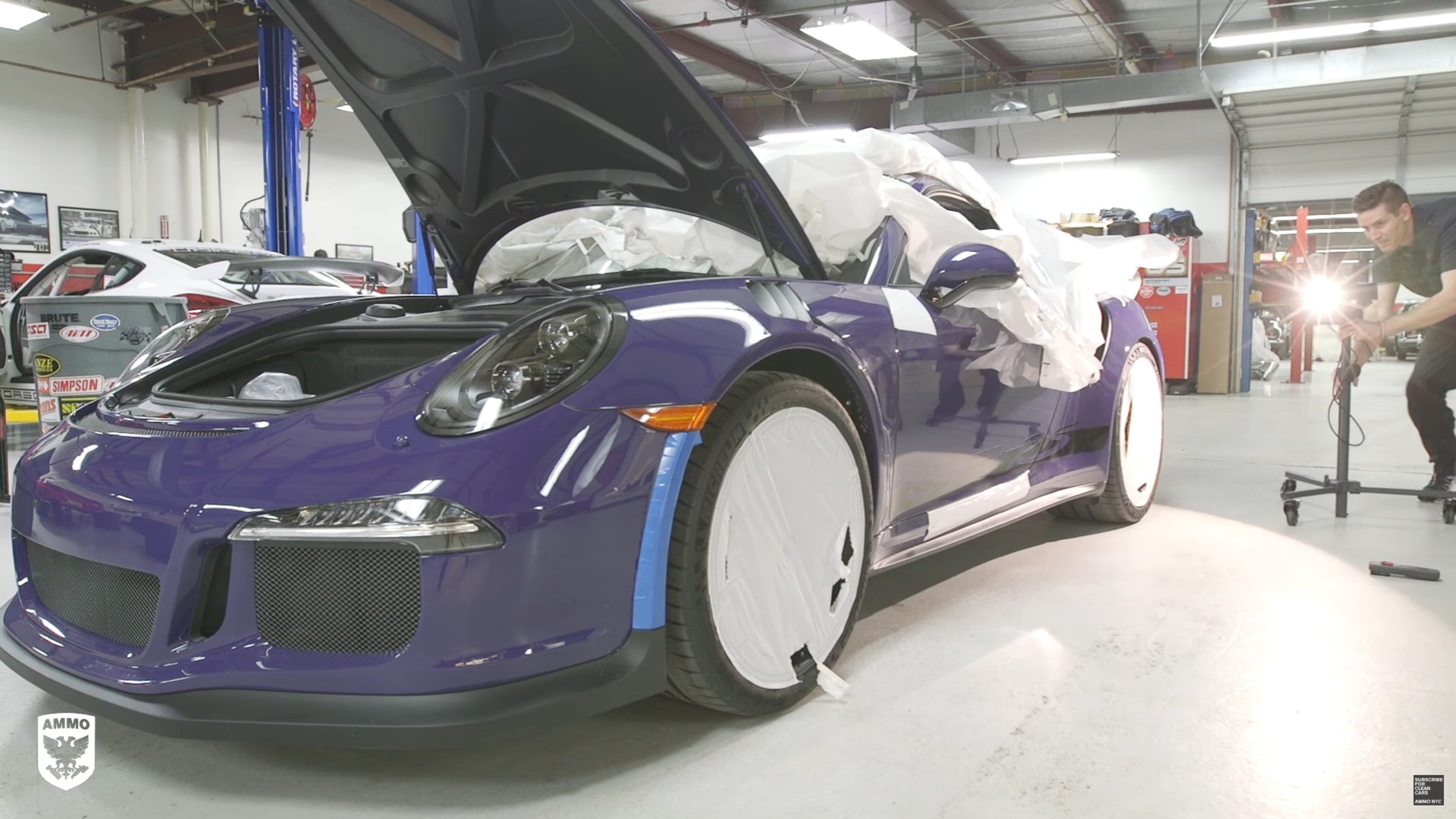 Porsche wraps all of their fresh deliveries in these white sheets, covering the wheels and every square millimeter of paint. This is intended to keep the paint from getting scratches and dents on the journey overseas, but underneath the cover is actually forming its own paint imperfections that need to be dealt with upon arrival. In this video, Larry walks through the process of inspecting brand new paint with this gorgeous UltraViolet Porsche 911 GT3 RS. Once the imperfections have been identified, then you can take the steps needed to correct that paint to it can truly be considered presentable.
