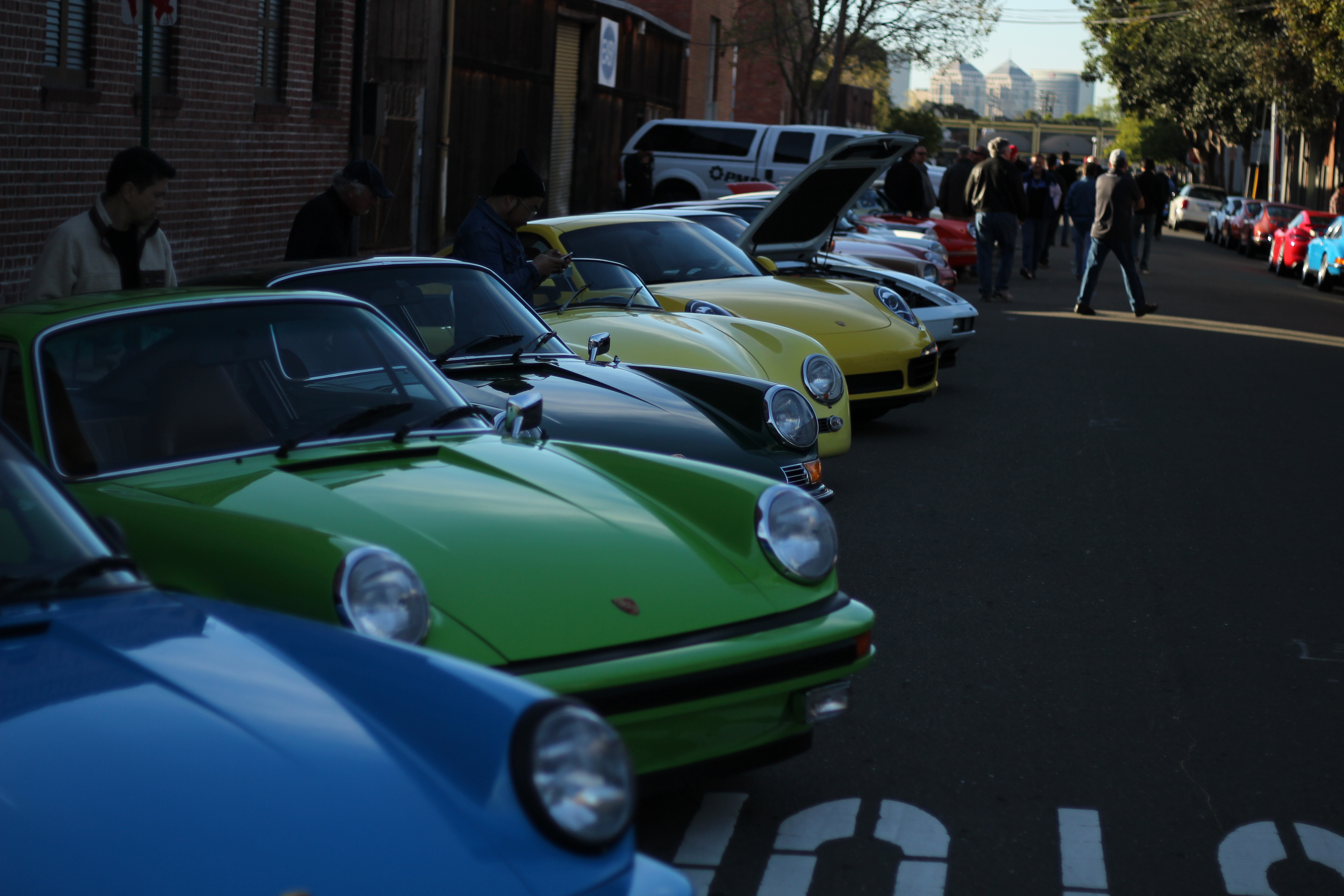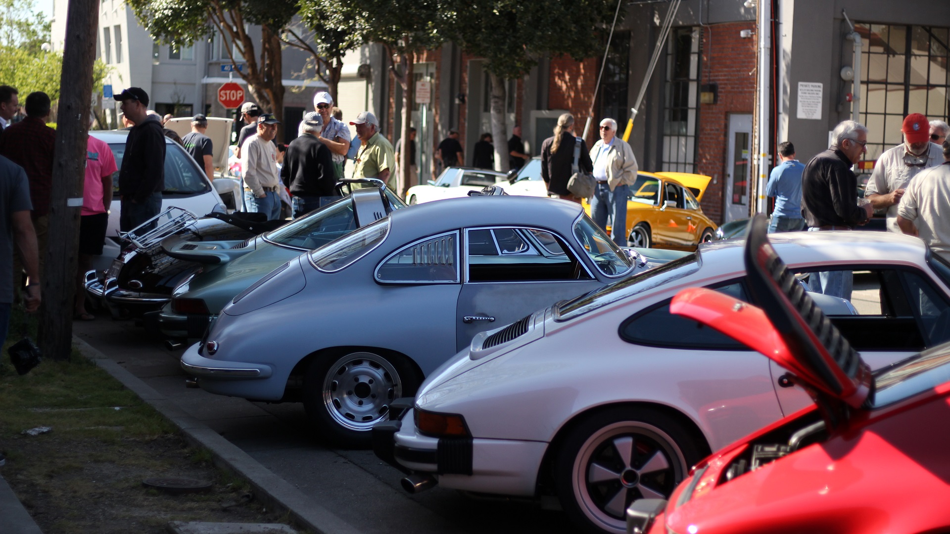 Here’s a quick photo essay to give you an idea of what the show is actually like to attend. Gorgeous vintage and new Porsches parked in any crack or crevice you can fit a Porsche in. First Saturday every month, be there.