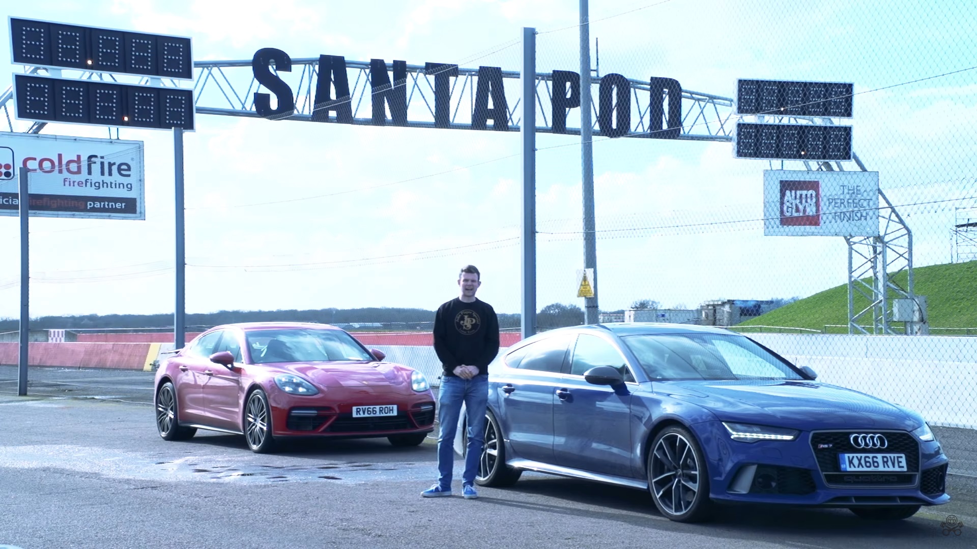 Naturally, the best place to compare these two cars is at a drag strip. Wait, what? That’s right, PistonHeads took this pair of beasts to the famed Santa Pod Raceway for a few blasts down the strip to see which one was fastest. It’s plain to see that neither of the drivers in this video have ever drag raced before, and the guy in the Panamera evidently didn’t know how to use the launch control function properly. None of the launches are properly impressive for a pair of big-power four-wheel-drive saloons, and the video host skipped the lights by a huge margin on his first run, but anyway, they were fast. Keep your foot in the throttle and keep the steering wheel straight and you can manage an impressive 11.7 second run in the Audi and 11.4 seconds in the Panamera.