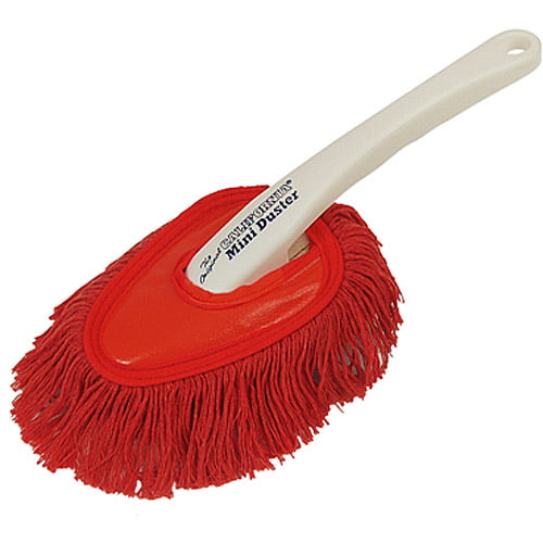 Car dusters are typically made with either cotton fiber or microfiber/chenille bristles. Many cotton fiber products are infused with paraffin wax in order to aid in lifting dust, pollen, and other contaminants off the surface area as opposed to simply spreading it around. Sometimes, these dusters require a break-in period and can leave lint and wax behind when they are first used. Ultimately, they provide some of the best results. Microfiber bristles are particularly soft and also a good job of removing dust without scratching the surface.