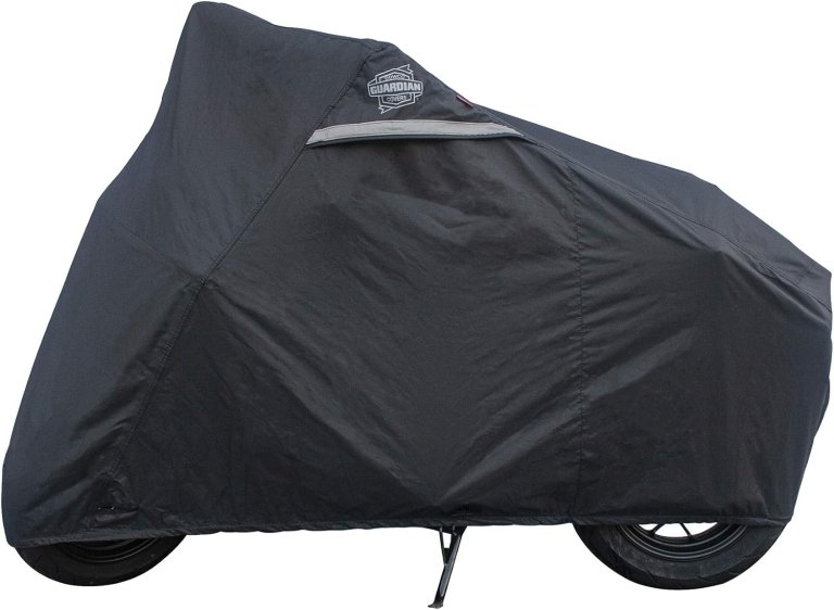 I’ve chosen the Dowco Guardian Weatherall Plus as the best overall motorcycle cover. This model essentially does it all thanks to its excellent waterproofing features and UV protection. If you’re on a tight budget, check out our value pick, the Nelson Rigg Deluxe All Season Cover.
