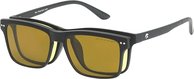 Eagle Eyes’ 2in1 SOL Magnetic glasses nets my top pick for a few reasons, but most of all because you get two for the price of one. The glasses themselves are night driving glasses, with polarized yellow-tinted lenses that reduce nightime glare. However, you also get a set of magnetic clip-on sunglasses that attach directly to the nightime driving glasses that let you use them during the day, too.
