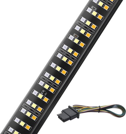 The Nilight tailgate light bar is a good option. The 504 LEDs in a 60-inch triple-row formation packs a strong punch, offering up to 300-percent greater illumination than traditional stock halogen bulbs. Its three-row style offers sequences for turn signals, reverse lights, brake lights, running lights, and sequential strobe lights running a combination of red, white, and amber colors. On the construction side, the Nilight light bar is very well-put-together. Silicone sealing offers moisture buildup resistance and each LED bulb carries an up to 30,000-hour lifespan, which means it can last practically an entire lifetime. It also offers a peel-and-stick mechanism using double-sided, automotive-grade 3M tape with standard flat 4-pin connections good for a plug and play setup.