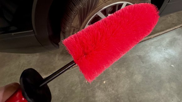 If you’re trying to clean wheels with many spokes or small deep pockets, the Red Rocket makes the job relatively easy. The long coned shape fits in tight spaces and the bristles are just stiff enough to remove brake dust and dirt without scratching your wheel’s finish. The backbone of the brush can also be bent to get into those really hard to get spots.
