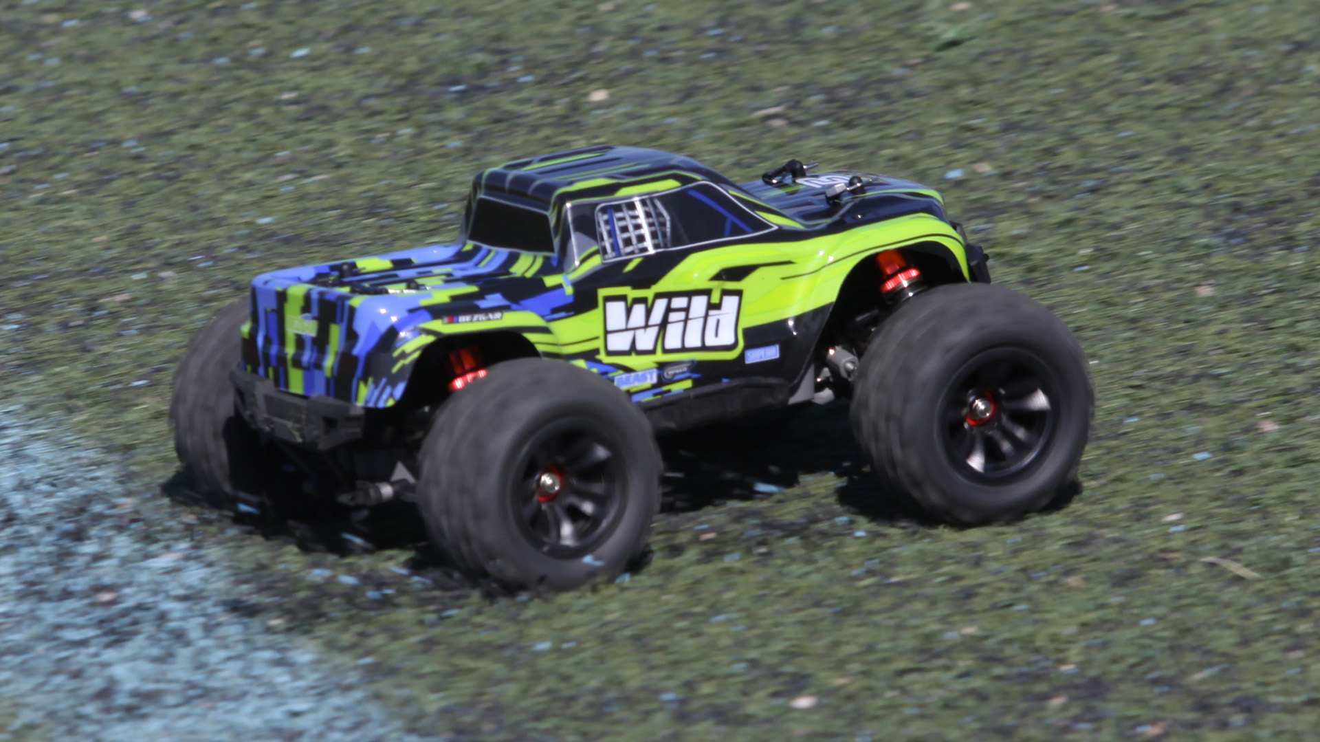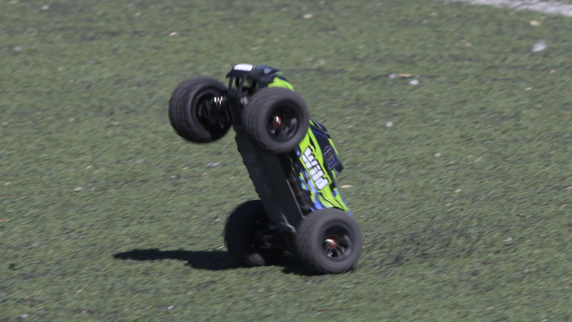 If what you’re looking for is big jumps, wheelies, and bashing on a budget, this is your best option. Like everything else in the world, YouTube videos and social media have given people expectations of extreme action in everything they do. This 1/16th scale brushless truck delivers the extreme with power to spare, literally. If you give this thing full throttle from a stop, it will wheelie so fast it literally flips on its top. There is a beginner throttle mode which basically limits you to part throttle. It is a little too tame and there is no inbetween. But, you quickly learn respect for the amount of power delivered by the brushless motor and LiPo battery. And it includes a wheelie bar.