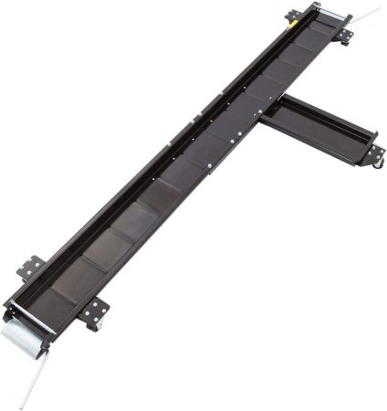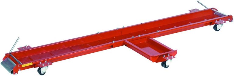 Make it easier to store and move your chopper or other large motorcycles on this extra-long dolly. It’s constructed from 12 gauge steel and has a maximum weight capacity of 1,250 pounds. What makes it stand out is the integrated loading ramp and adjustable kickstand plate. This makes loading and securing your motorcycle easy. You can adjust the kickplate up to 31 inches with five locking positions on either side of the dolly. The track measures 94 x 8 inches. Supporting the dolly are five double caster wheels.