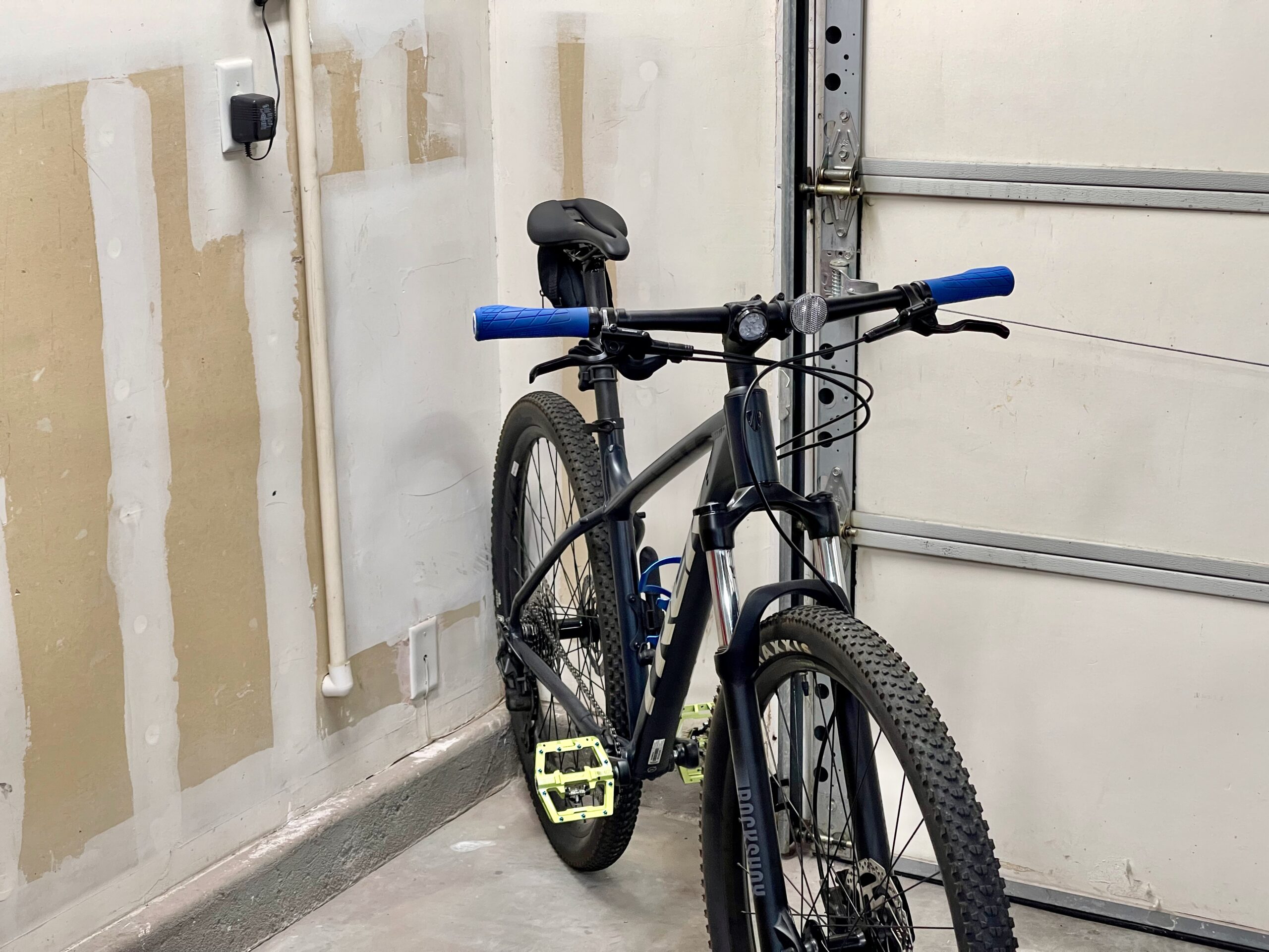 The installation process was easy, I mounted two lights on chains so they would hang below the tracks for the garage door, and the other two are mounted directly to the ceiling. The most time consuming thing is tacking the cords to the ceiling. Pro tip: don’t assume your local hardware store will have whatever length and color of extension cord you could want; because they don’t. I ran the power cords to a light socket plug adapter that was already installed and run to a light switch by the door into the house. All in, it took a little over an hour, but that included moving things around for access.