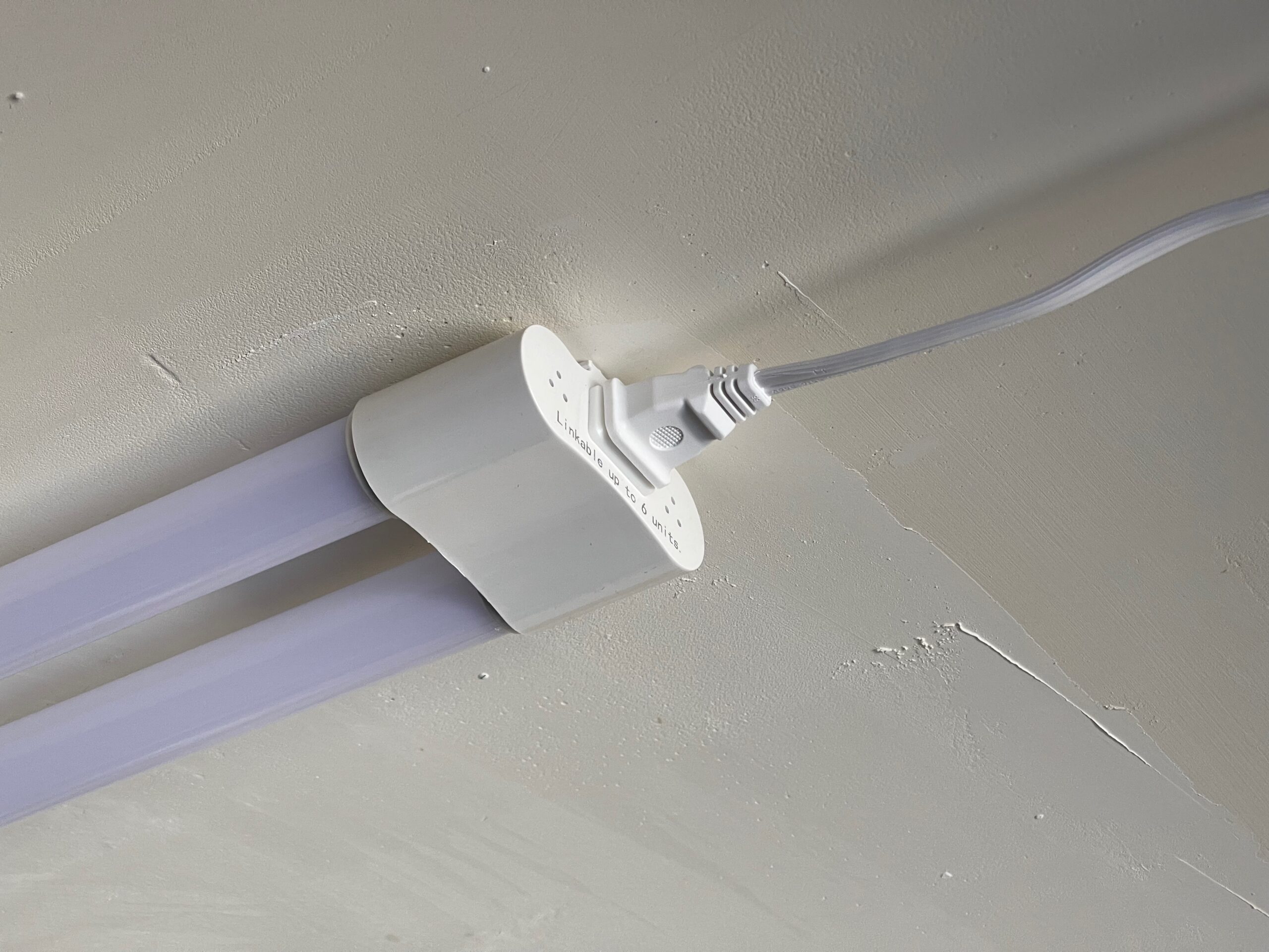 Switching them on the first time, even with the roll-up door open in daylight, it was amazing how much more light was in the garage. The second thing you will definitely notice is how dirty your garage walls are. The kit is easy to install, the tubes feel a bit cheap, but if they were made with thicker plastic or even metal, they’d be heavier and would require more than drywall anchors to hang. The color is very white and clean, without looking fake, some daylight colors come off too cool/blue in my opinion. The power cords are 59 inches, which isn’t as long as you think and wasn’t enough for the spans I wanted to cover in my two car garage. Overall, I don’t think I could be happier for the money and time I committed to this.