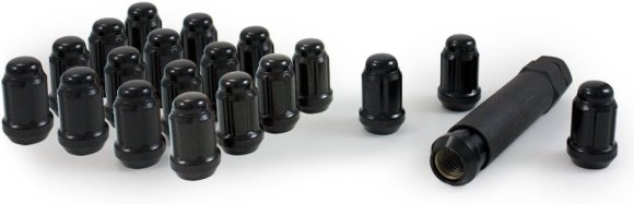 These stylish acorn-style lug nuts with a matte black finish are 1.36-inches tall and only 0.8-inches wide. They’re much narrower and more lightweight than standard factory OEM-issued alternatives. They’re also precision engineered in chrome vanadium steel for maximum durability, and the black paint job is remarkably scratch- and corrosion-resistant.