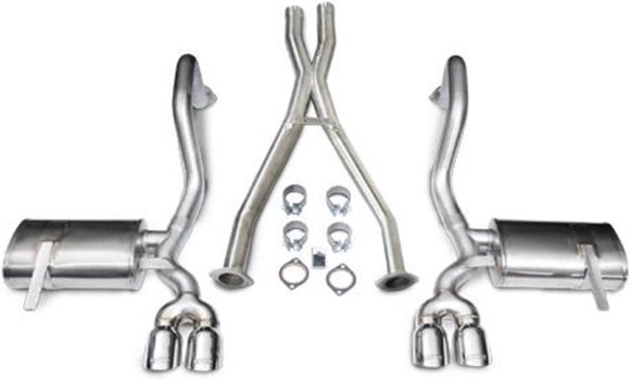 If you need a replacement exhaust because the factory system has rusted, cracked, or is otherwise pushing up daisies, you will want to replace the entire thing with a cat-back. As the name implies, this is a system that starts at the car’s catalytic converter and replaces everything from there back to the tailpipe(s). Since the original catalytic converter is untouched, these are emissions-legal in 50 states and won’t void your car’s warranty except in unusual cases.