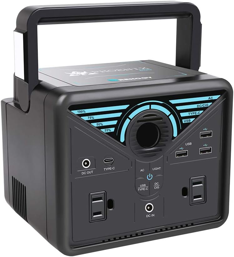 The Jackery Portable Power Station Explorer 500 is a clear choice as the best overall option. It supports a large variety of AC-reliant devices and electronics like TV, blenders, laptops, etc. It contains a standard 12V/10A carport and three 5V/2.4A USB ports to charge your smaller devices, while the Jackery’s 110V/500W AC outlet can support any device under 500W.