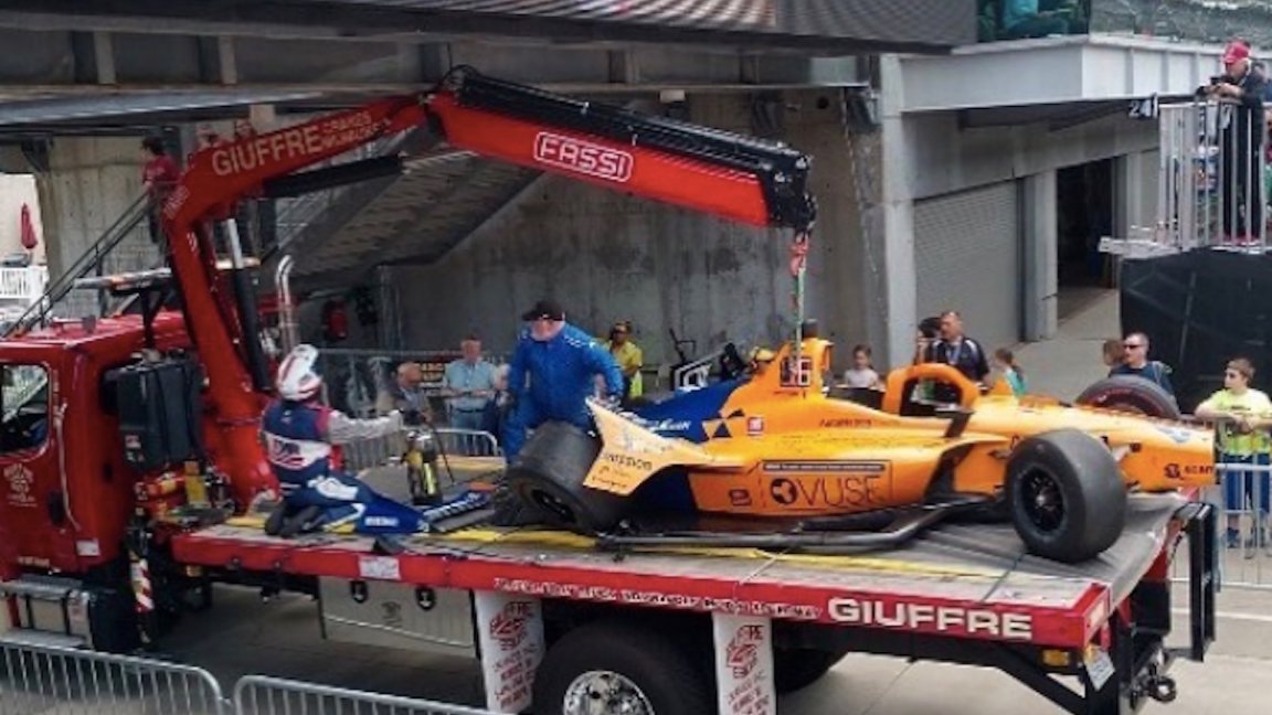 Indy 500: Wrecker Truck Carrying Fernando Alonso’s Mangled McLaren IndyCar Crashes Into Bridge