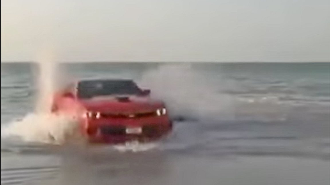 Watch an Idiot Chevy Camaro Driver Do Donuts in the Ocean