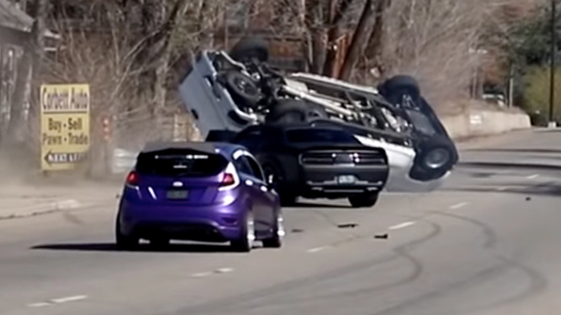 Dodge Challenger Hellcat Driver Demolishes Passing Truck in Idiotic Cars and Coffee Crash