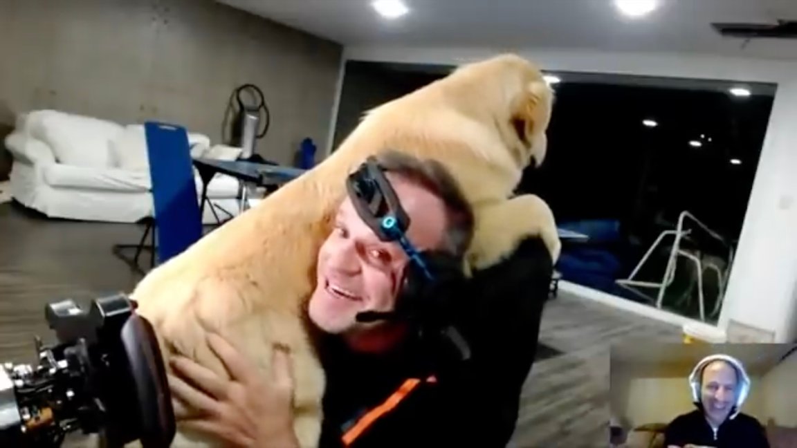 Watch a Big Snuggly Dog Interrupt Former F1 Driver Rubens Barrichello’s iRacing Stream