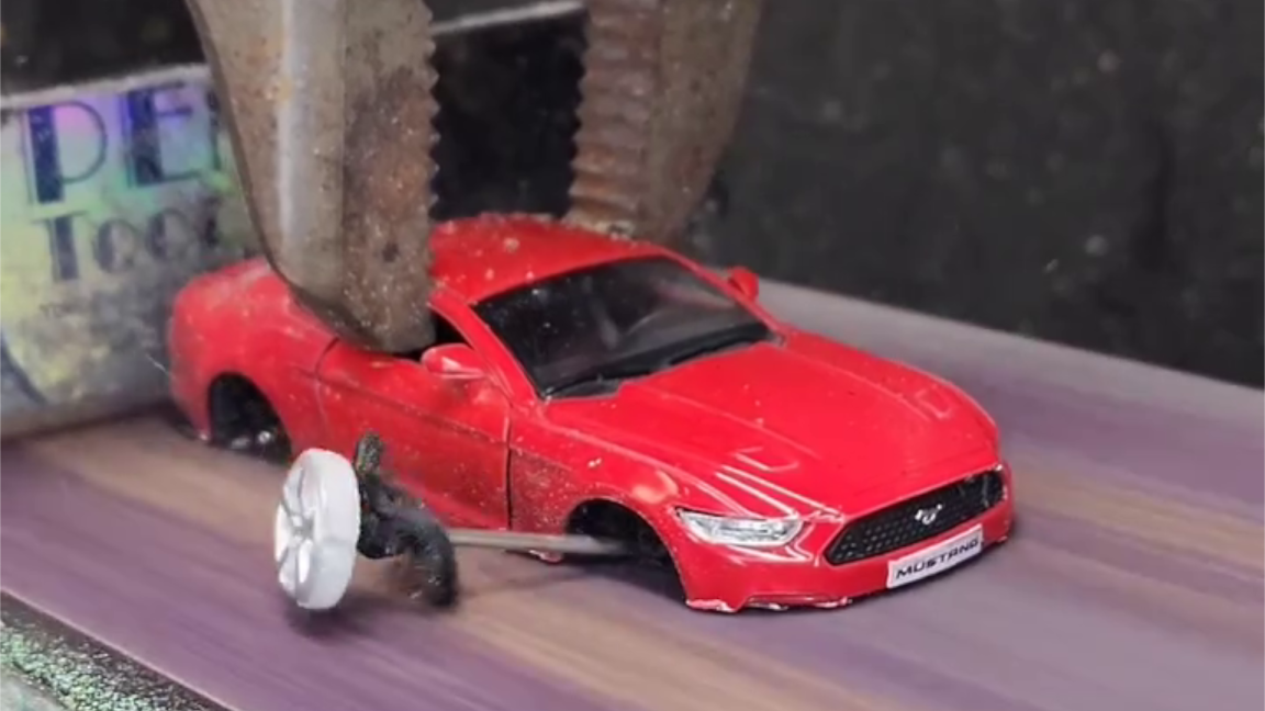 Watch a Belt Sander Slowly Erase All These Toy Cars