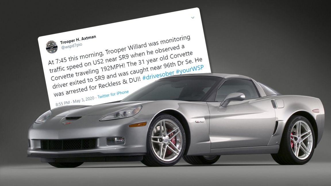 Breakfast-Loving Corvette Driver Caught Doing 192 MPH on Washington Highway