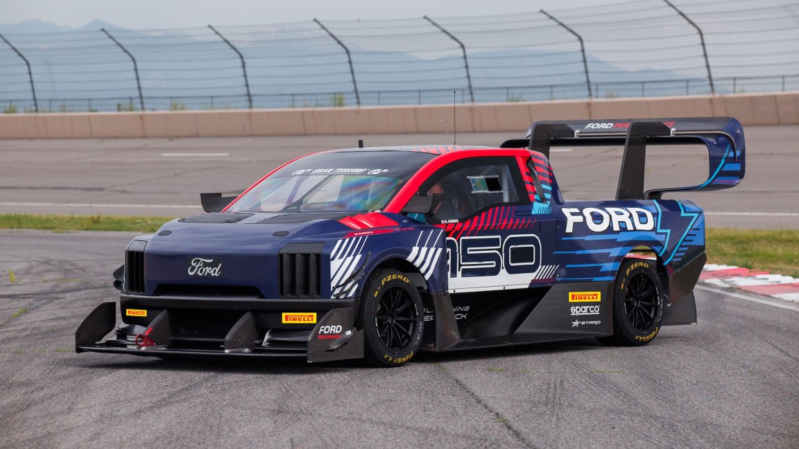 Ford F-150 Lightning SuperTruck front three-quarter view.