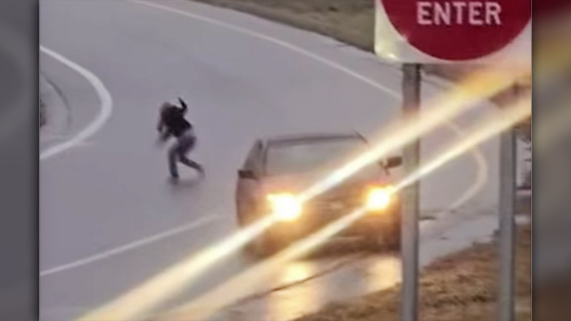 Watch a Panicking Driver Bail Out of Moving Car After Hitting Black Ice