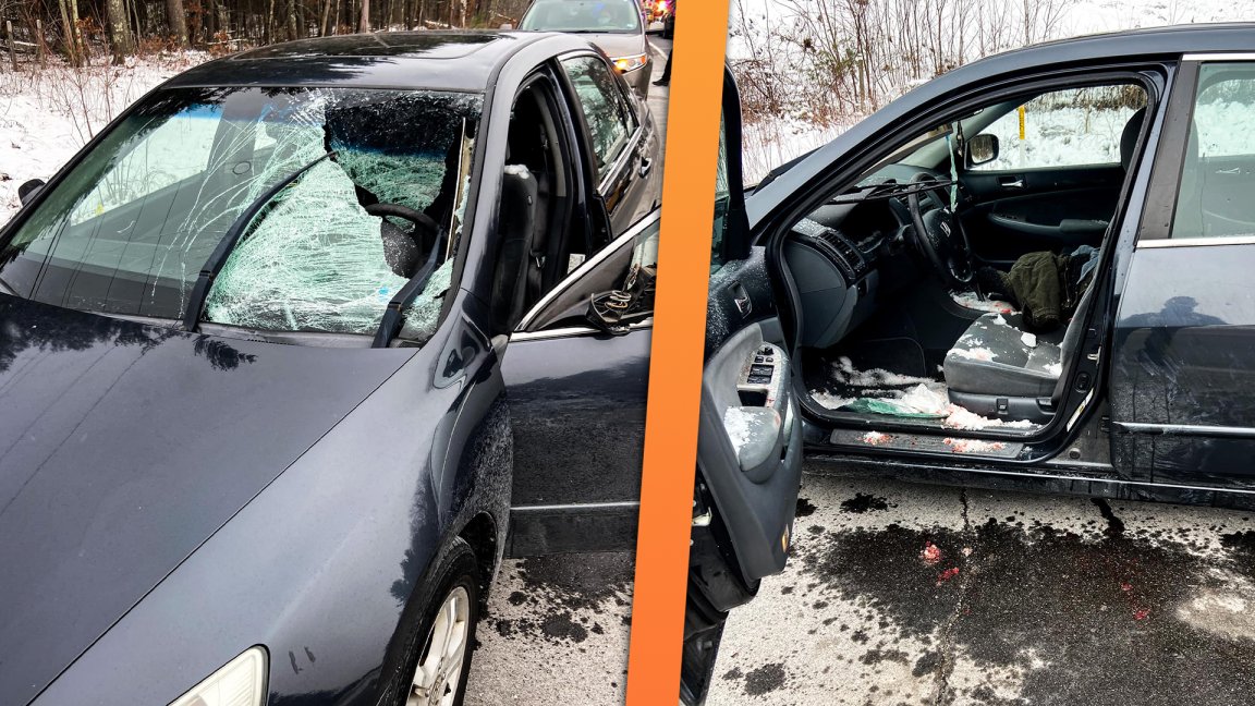 Driver Arrested After Snow Flies Off His Box Truck and Wrecks Honda Accord Behind Him