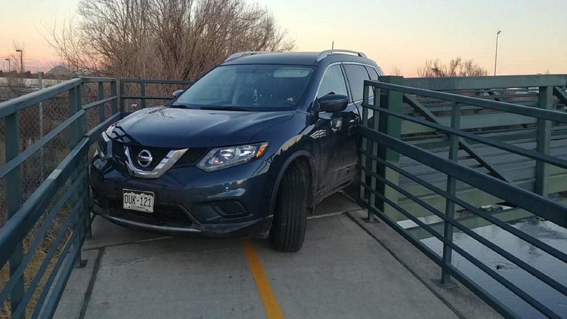 No One Knows How This Nissan Rogue Got Stuck on a Colorado Bike Bridge
