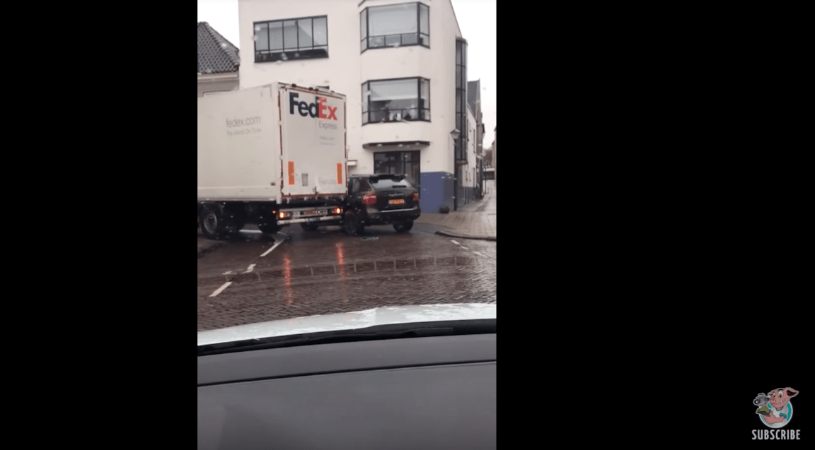 Watch a Delivery Truck Crash Into and Drag a Poorly Parked Porsche