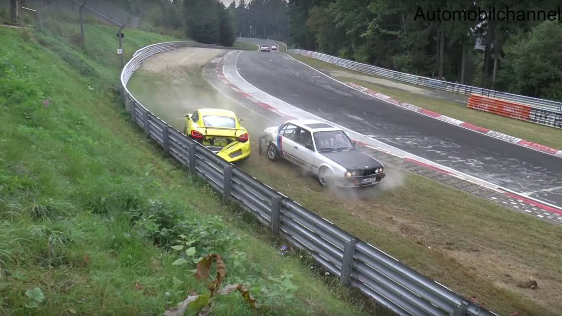 Watch a Porsche Cayman GT4 Crash Into an E30 BMW 3 Series at the Nurburgring