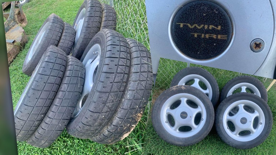 JJD Twin Tires for sale on Facebook. The side profile shows two tires mounted on a single wheel.