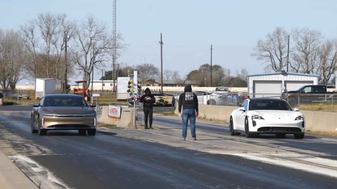 Watch the Lucid Air Cream the Porsche Taycan in a Drag Race