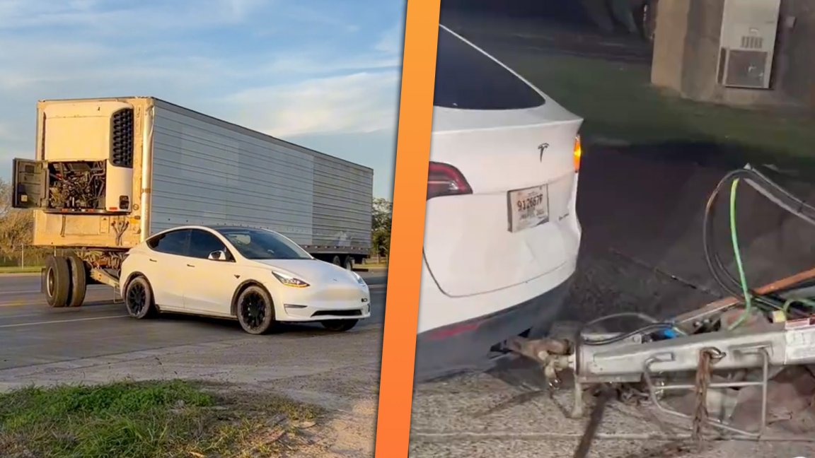 Tesla Model Y Tows Semi Trailer Until It Can’t Anymore, Driver Flees