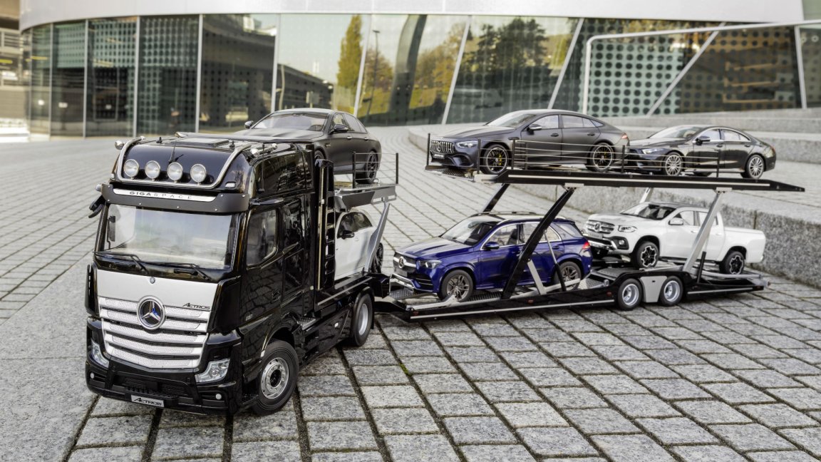 Indulge Your Trucking Fantasies With This 1:18 Scale Mercedes-Benz Actros Car Hauler