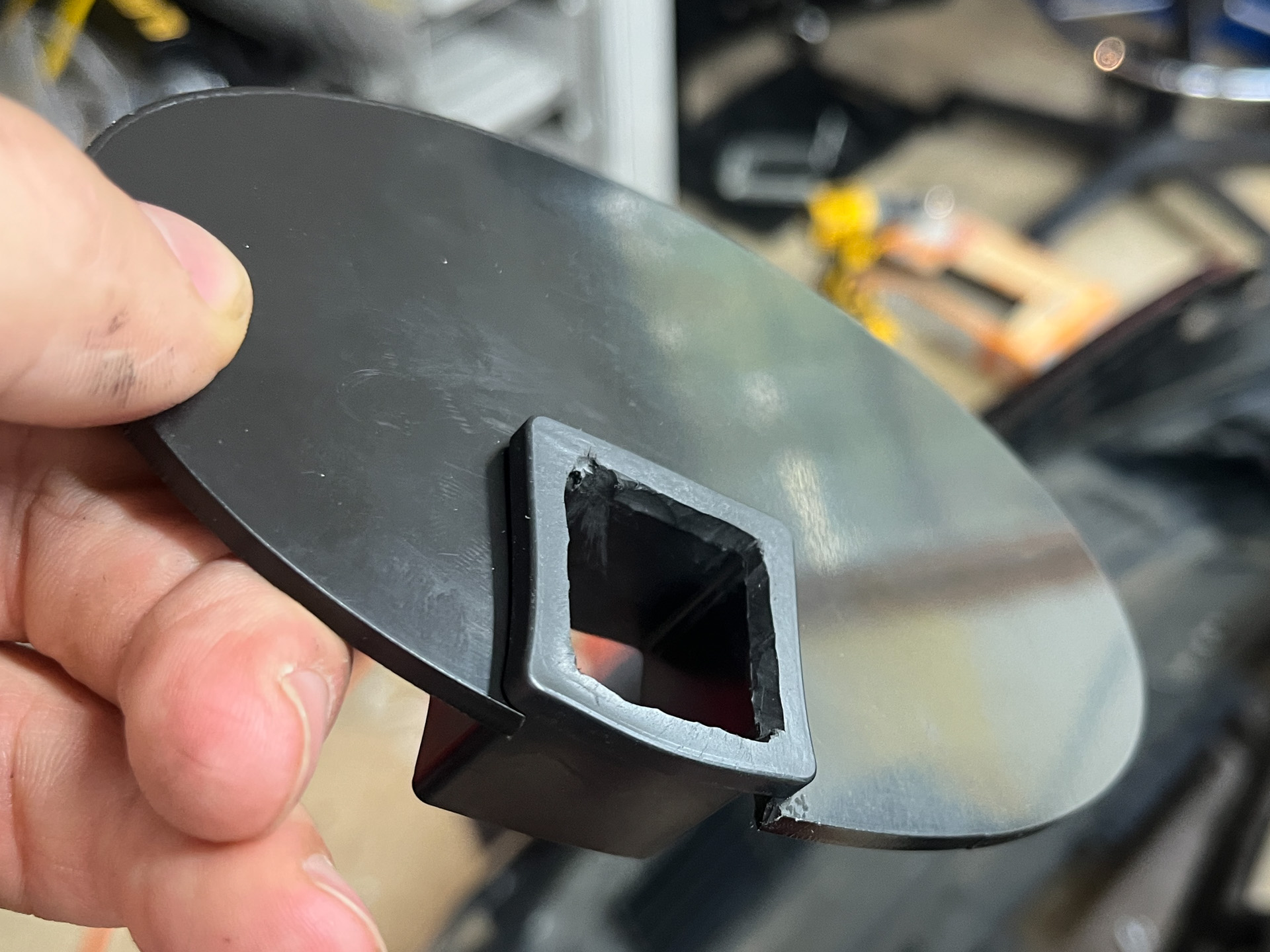 But since I did want to keep it, my thought process was, “I’ll do a slightly recessed adapter plate, so that the round toggle is kind of tucked into the dashboard and doesn’t protrude, but isn’t so deep it’s hard to reach.”