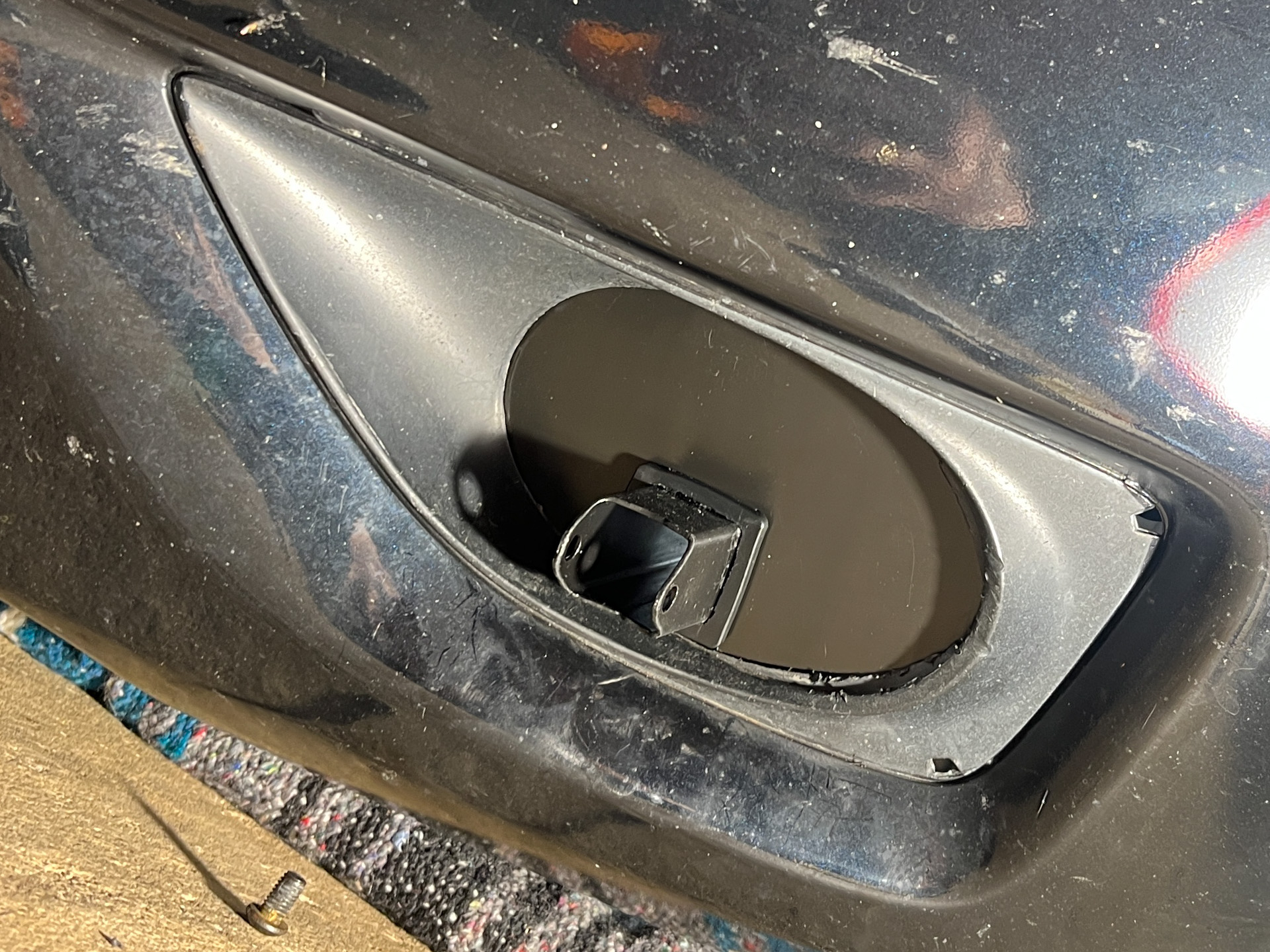 Once I test-fitted to find exactly where the light mounting tube would spear through the old fog light portals, I knew where to cut those Delrin ovals so they’d fit neatly.