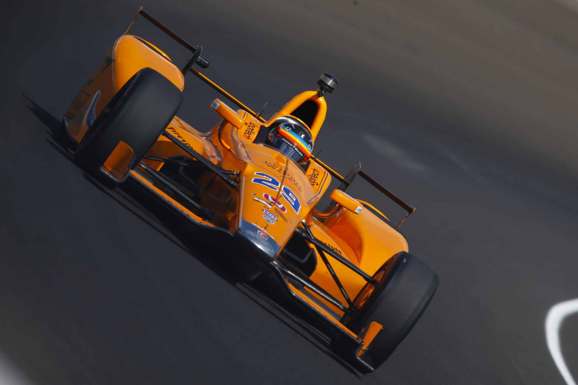 On track, Alonso wasn’t just running at the same speeds as his teammates, he was making his way around the speedway like a seasoned veteran. He was drafting, passing, going three wide into corners while blowing by the other two cars. We’re pretty sure Alonso has this oval thing figured out.