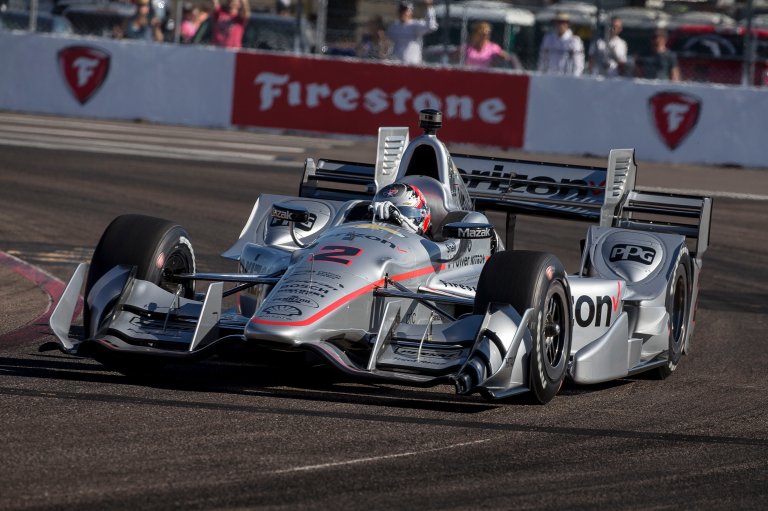 Castroneves then took off, taking Simon Pagenaud, Graham Rahal, and Spencer Pigot with him away from the rest of the field. In the early stages, Castroneves was looking like he could stay up front for the whole race. Before the lead group could pit, Tony Kanaan locked up and slid into the tire wall following his stop on lap 23. This brought out the safety car and changed everything.