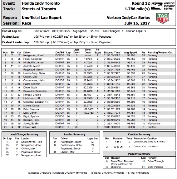 The trio would go on to finish in that order. This was Newgarden’s fifth IndyCar win and his second in Toronto. This win keeps him in fourth and firmly in the hunt for the championship this year.