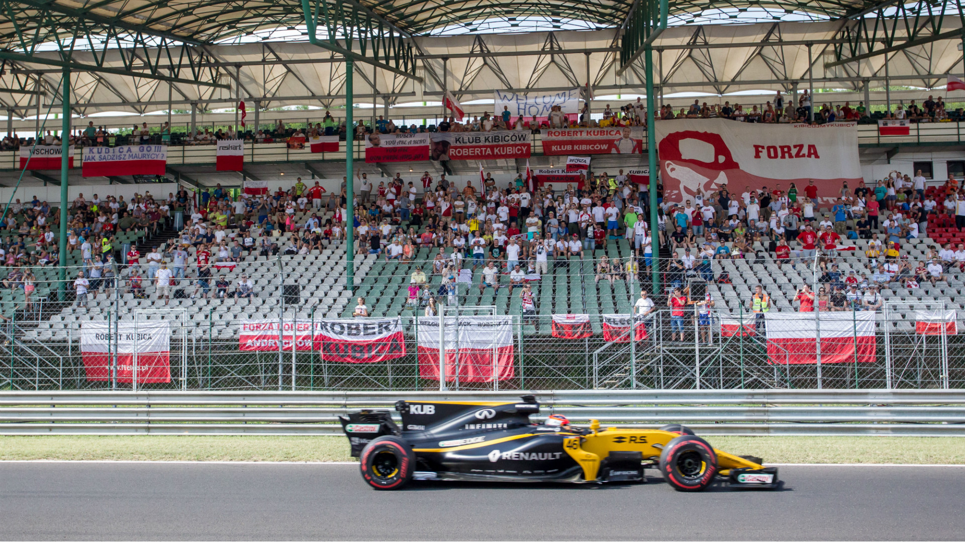 For weeks, we have been anticipating our chance to see Robert Kubica back in a current Formula One car. We got that chance today, when Kubica completed 142 laps of the Hungaroring between the morning and afternoon test sessions, cheered on by an army of fans from the main grandstand. Half way through the day, Kubica met the requirements for an FIA Super Licence, passing the 300-kilometer mark on his 69th lap. His best time in the morning session was a 1:19.681, and in the afternoon, 1:18.572, gaining over a second throughout the course of the day’s events.