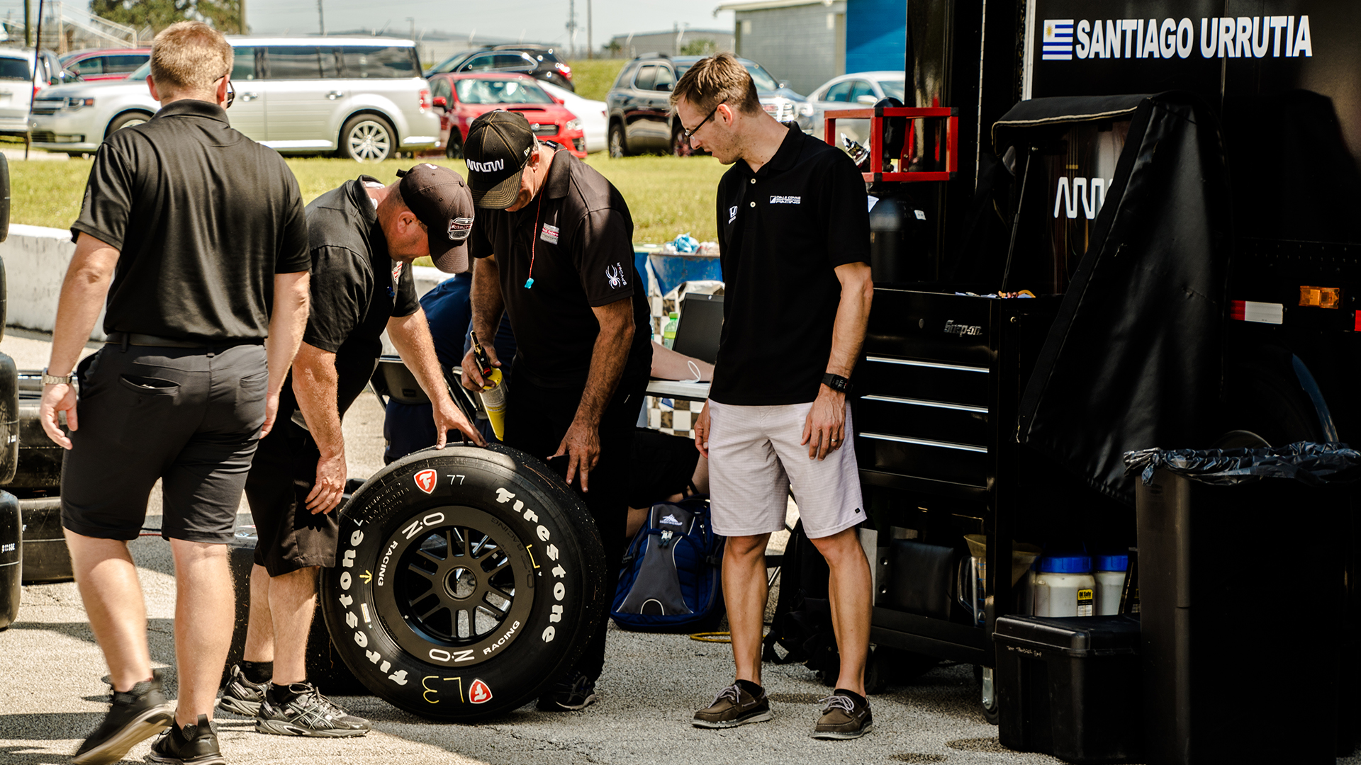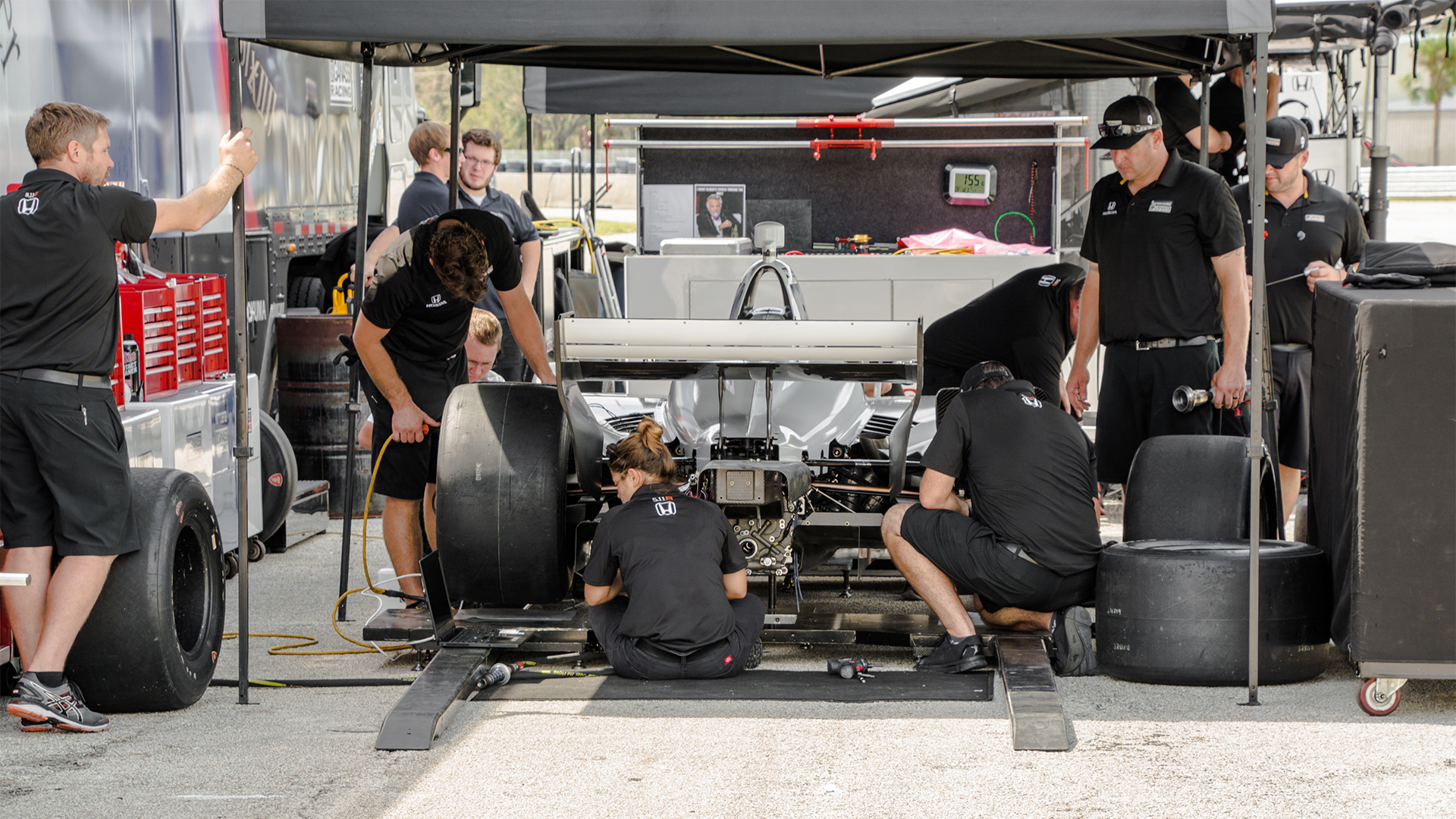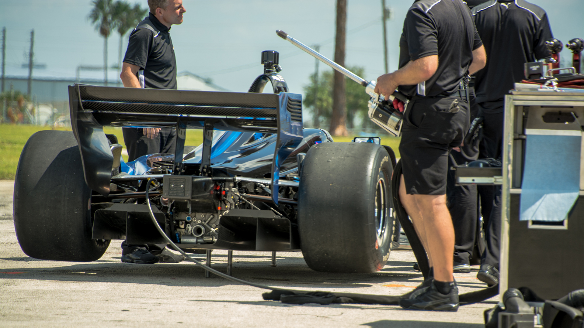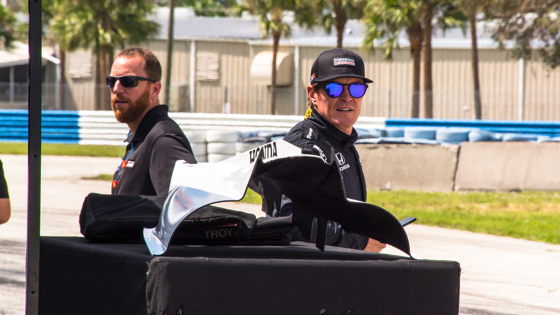 The testing was taking place on the short-track configuration, so the teams were set up at the club pit area in the infield. This meant that the trucks were rolled and make-shift pit areas were assembled on the side of a road. While the drivers and crew had the occasional chance to cool down in one of the mobile offices or transporters that the teams brought, they were, for the most part, outside on a beautiful autumn Florida day. Autumn in Florida means that Summer is just reaching its peak.