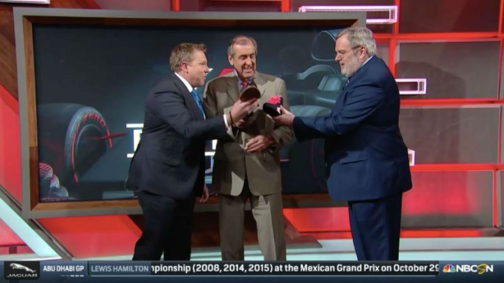 The certifiably tremendous broadcast team of Leigh Diffey, David Hobbs, and Steve Matchett signed off for their final Formula 1 race after Sunday’s Abu Dhabi Grand Prix. With rights switching to ESPN for 2018, the NBC Sports crew will be retired from F1 coverage with the network, bidding farewell after nearly doubling the sport’s audience in only five years. To say goodbye, the three journos went out in true and honest fashion—with a shoey.