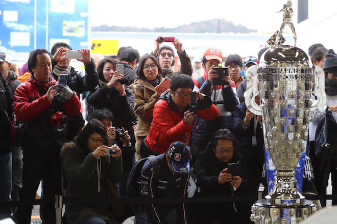 Additionally, the hardware attracted the attention of ex-Formula 1 star Jenson Button who also came along for the ride to Japan. His upcoming efforts in the Super GT series have made him a star in the country, much like the Borg-Warner Trophy, and he was sure to compliment the decorated bit of kit as a result.