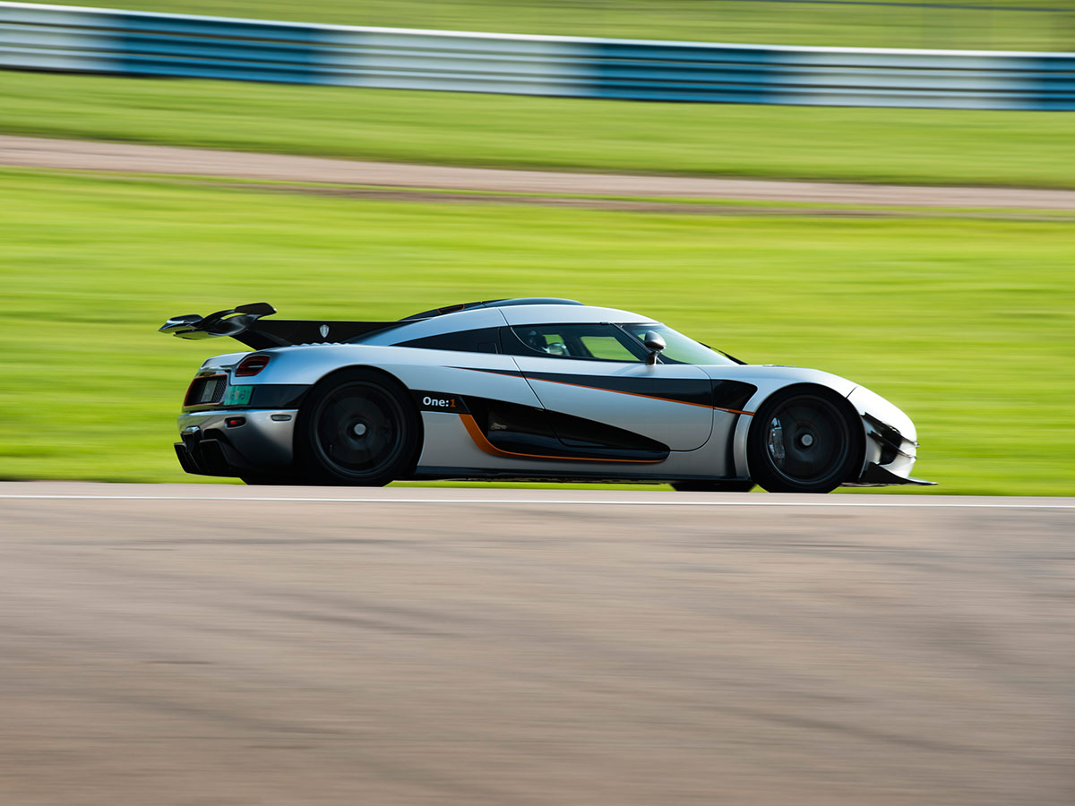 And it managed all that while out of fighting shape; No. 00 is actually about 110 pounds heavier than the six production One:1’s produced. That’s due to a different carbon fiber used for its tub, an optional roll cage, and exhaust tips made of aluminum rather than titanium.