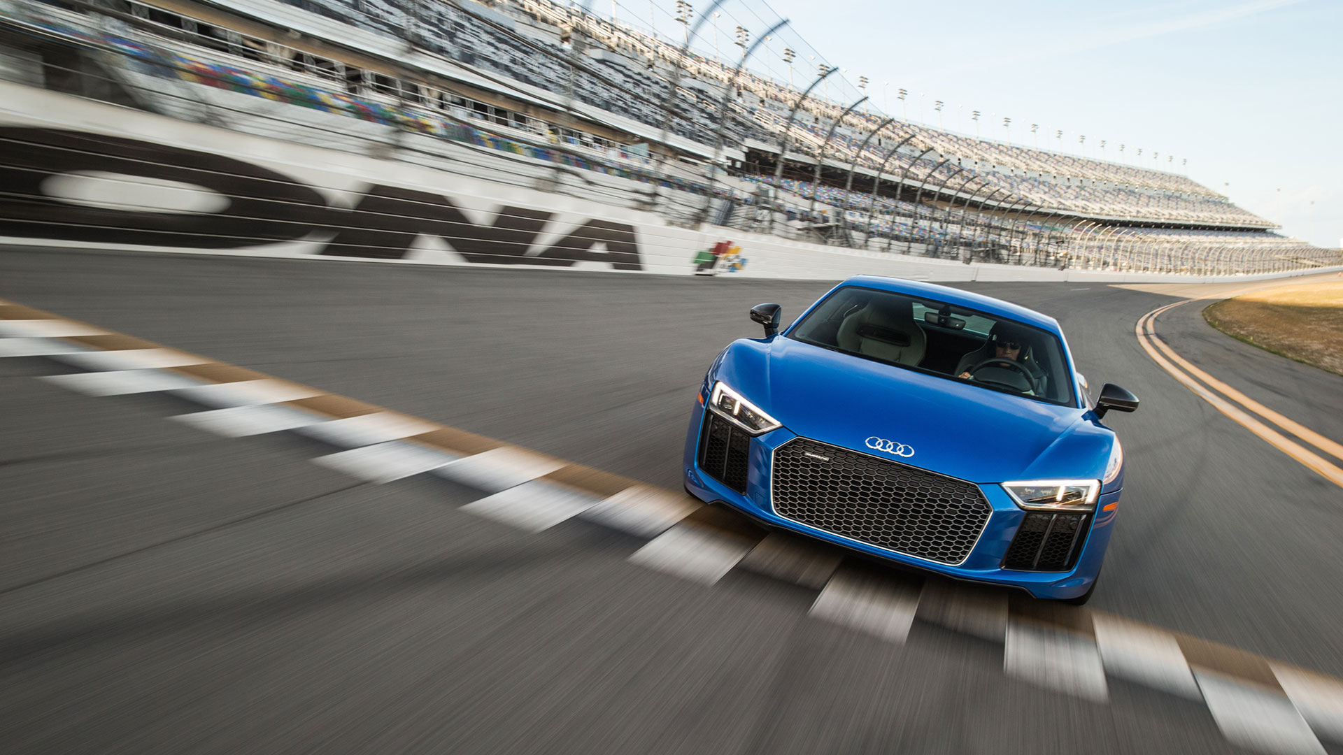 A note from Daytona International Speedway: Avoid whacking things at 180 mph. Especially in an Audi R8 V10 Plus, from which I punted an orange cone into the next county, determined to set a sub-two-minute lap.