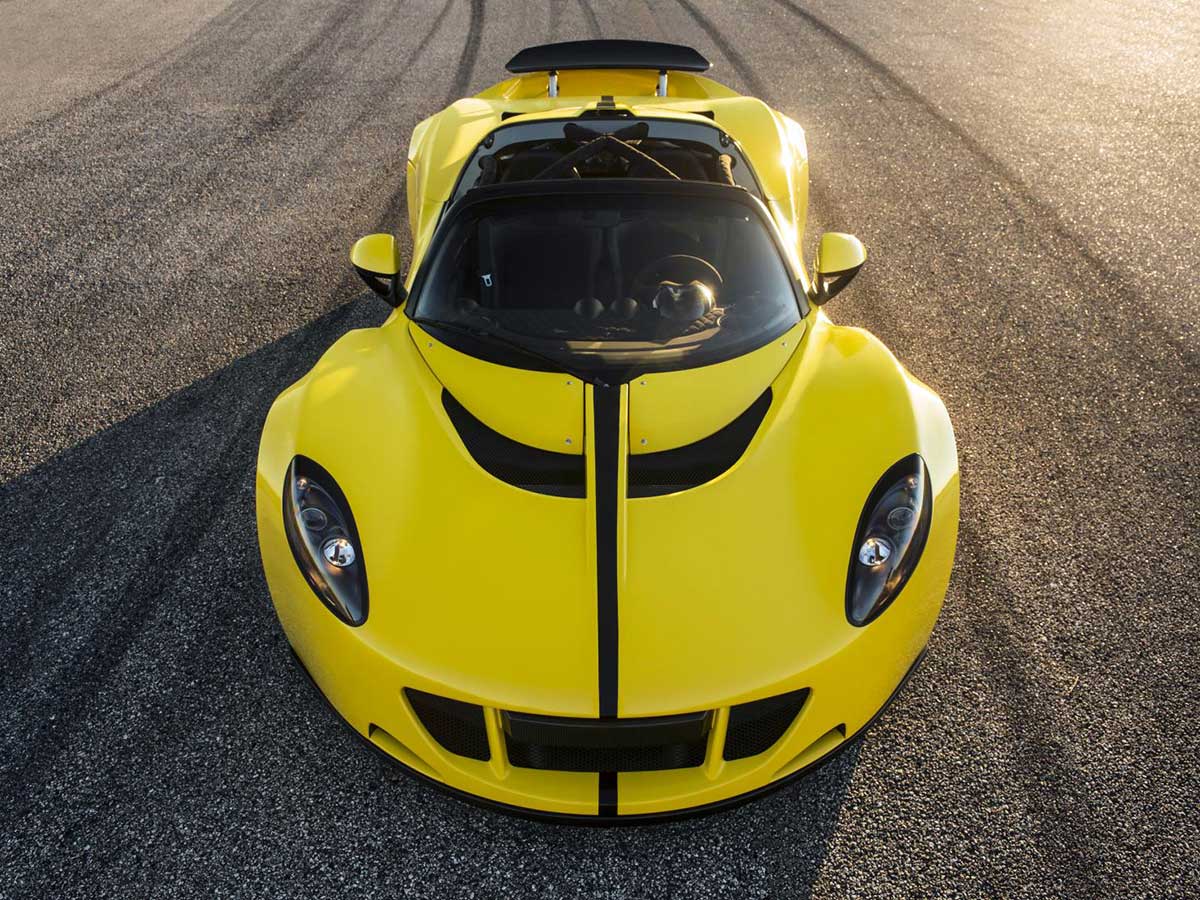 Fingers crossed for Texan tuner John Hennessey, whose custom-built Venom GT now pumps 1,451 hp. Why not an even 1,500, we’re not sure. Maybe he couldn’t shut down another public highway to find out. In either case, the Venom GT is now a spyder. Since it’s based off the Lotus Exige hardtop and Elise roadster, Hennessey can do that with relatively minimal fuss.