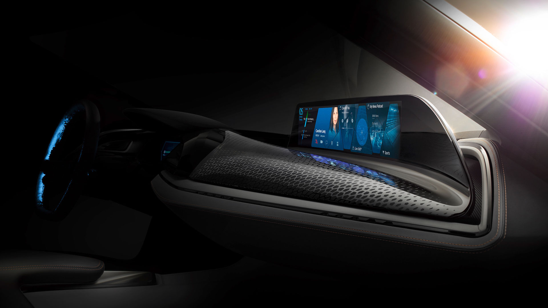 The idea? A touchless interface, where all your infotainment needs are met via gestures. It’s an expanded version of the gesture-control system BMW rolled out last year, which has made it into production via new 7-Series sedan. But while that system is limited to simple controls, this AirTouch allows users to enable sensors that reside ahead of the center console. Occupants can then gesticulate in front of the screen to enable menus and submenus. BMW says this system reduces the number of steps required to transact with the directory.