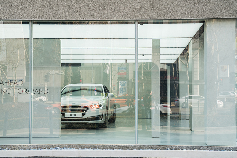 The building is gorgeous—designed, in fact, by renowned Dutch architect Rem Koolhaas. It’s mysterious—a minimalist work of concrete and glass—and also elegant, thoroughly free of the visual clutter of the average car dealership. But then again, it’s not really meant to be a dealership in the first place. It’s a simple showroom, placed strategically in the heart of Seoul’s upscale Gangnam District for the newly-standalone Genesis brand, the luxury spinoff of Korean-based global behemoth Hyundai. It’s meant to merely introduce curious car buyers to the marque, and then refer them to dealers once they’re interested.