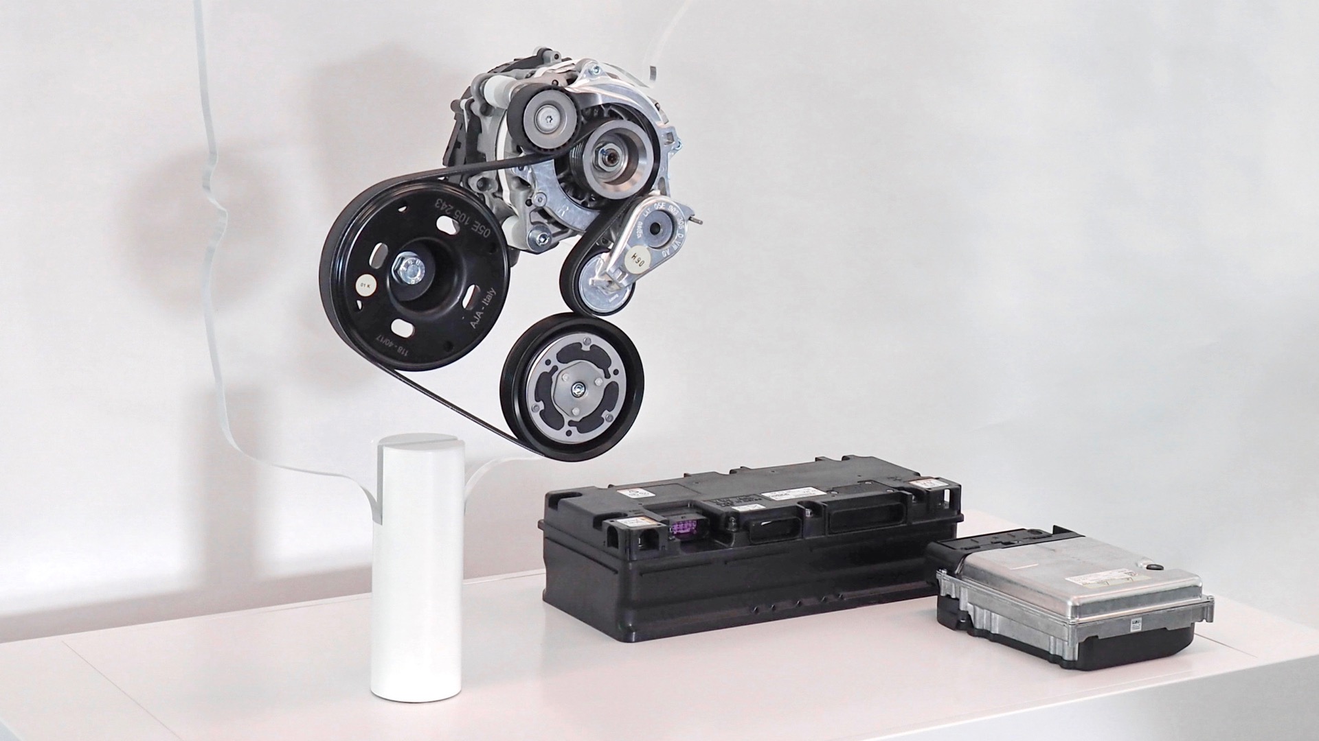 The Volkswagen system is based around a belt-integrated starter-generator, which does the work of a conventional starter motor and alternator. A small lithium-ion battery pack stores electricity, which is harvested from regenerative braking. The system will allow the next-gen Golf to “coast” with the internal-combustion engine off, and the starter-generator will provide a small power boost on startup, according to VW.