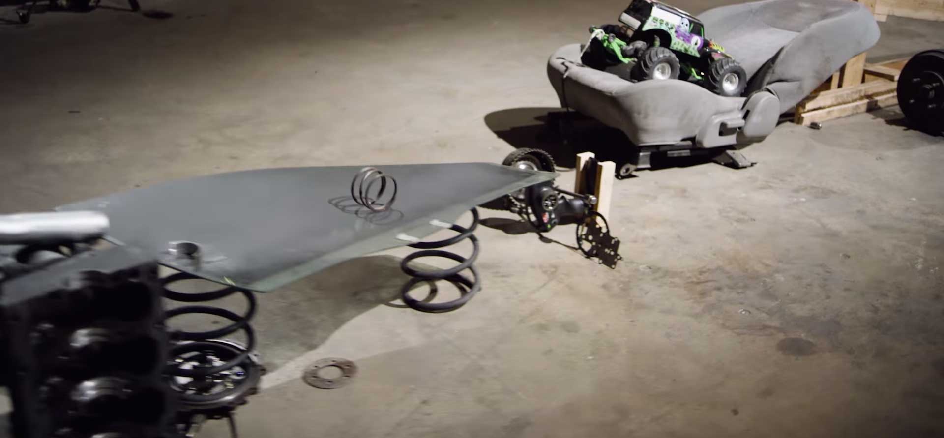It begins simply enough: What appears to be a Corvette Stingray Matchbox car gets shoved off the lip of an engineer’s desk, setting off the chain of micro-events. Piston rings, exhaust plumbing, fluid reservoirs and other bits of garage flotsam are brought into the mix. In a sop to monster-truck fans of a certain vintage, there’s a radio-controlled Grave Digger getting all up in a brake rotor’s business. A washer-fluid reservoir micturates in a fish tank. It goes a bit Fellini here, but stay with Arrow for another 30 seconds. Past the gauntlet of rusted car doors and bounding tires is a 21st-century twist that pushes this stunt into the realm of mass entertainment. Watch below to find out.