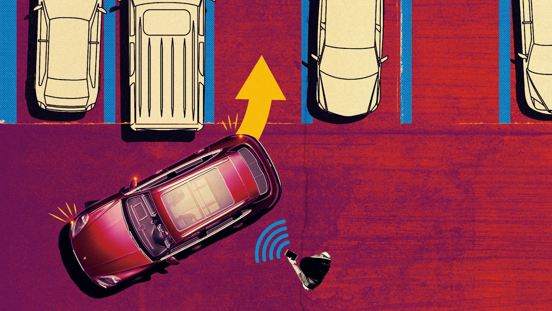 Environment scanning begins, and the vehicle using a quartet of cameras for a full 360-degree view of its surroundings. A dozen ultrasonic sensors also feed data to the vehicle’s “central driver assistance control unit,” which use 20 additional control units to slot the vehicle into its space while on the lookout for obstacles, be they pedestrians or stray pets.